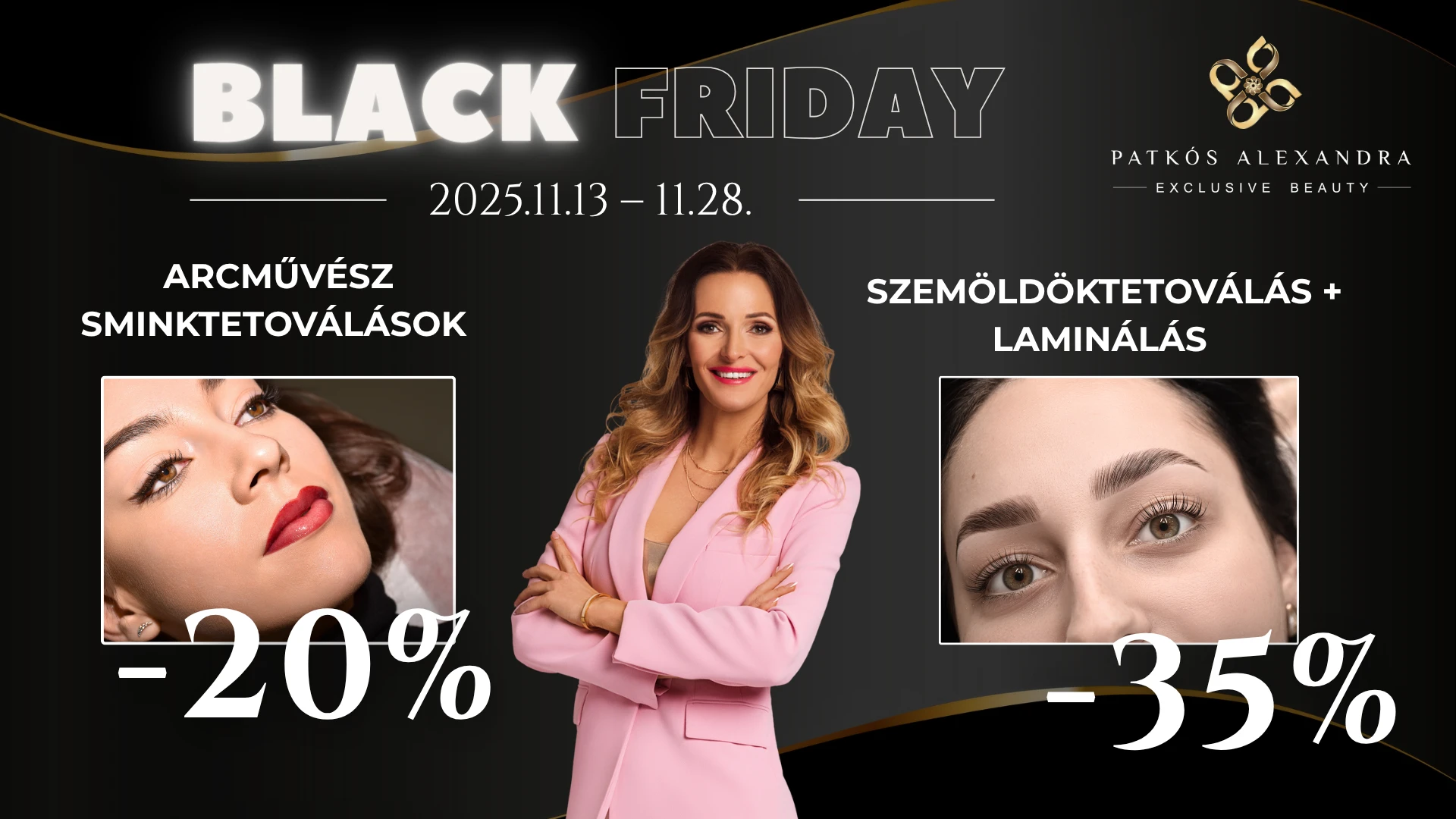 A Patkós Alexandra Exclusive Beauty szalonban most különleges Black Friday ajánlatokkal várunk  melyekkel kivételes lehetőség nyílik arra, hogy a szépséged még inkább ragyogjon.